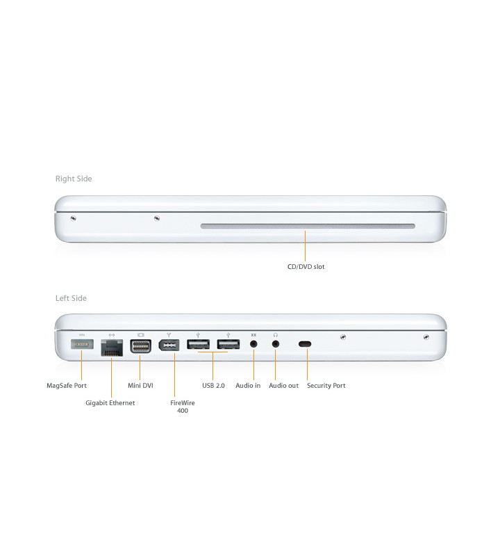 The new MacBook now comes with 1GB of memory standard and larger hard drives for the entire line perfect for running more of your favorite applications and storing growing media collections.